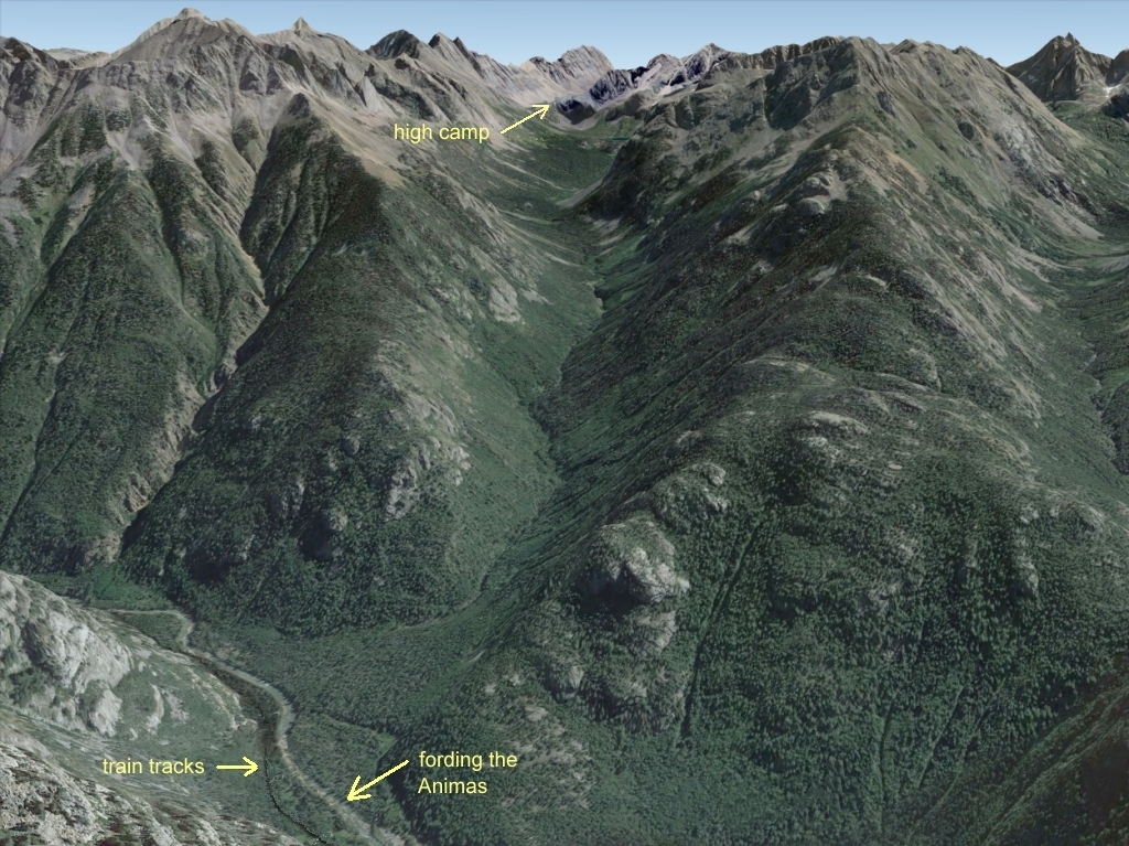 If I'd been unable to ford the Animas and then got blocked while attempting the east-bank escape route, I'd have had to take a three or four-day hike -- including a high pass -- with essentially no food -- in order to make it back to civilization.