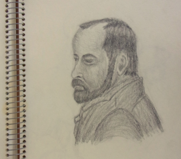 Bill didn't care to pose, so he was sketched as he stood conversing with others and moving about. Much difficulty factor. <-- back to portraits index