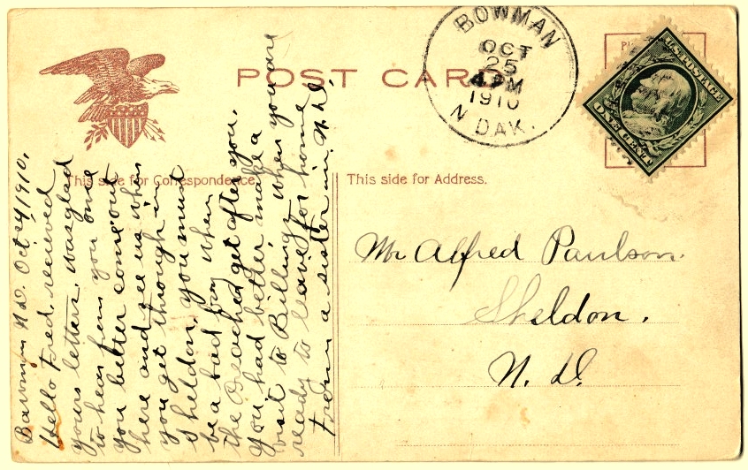 Hello Fred. Received your letters. Was glad